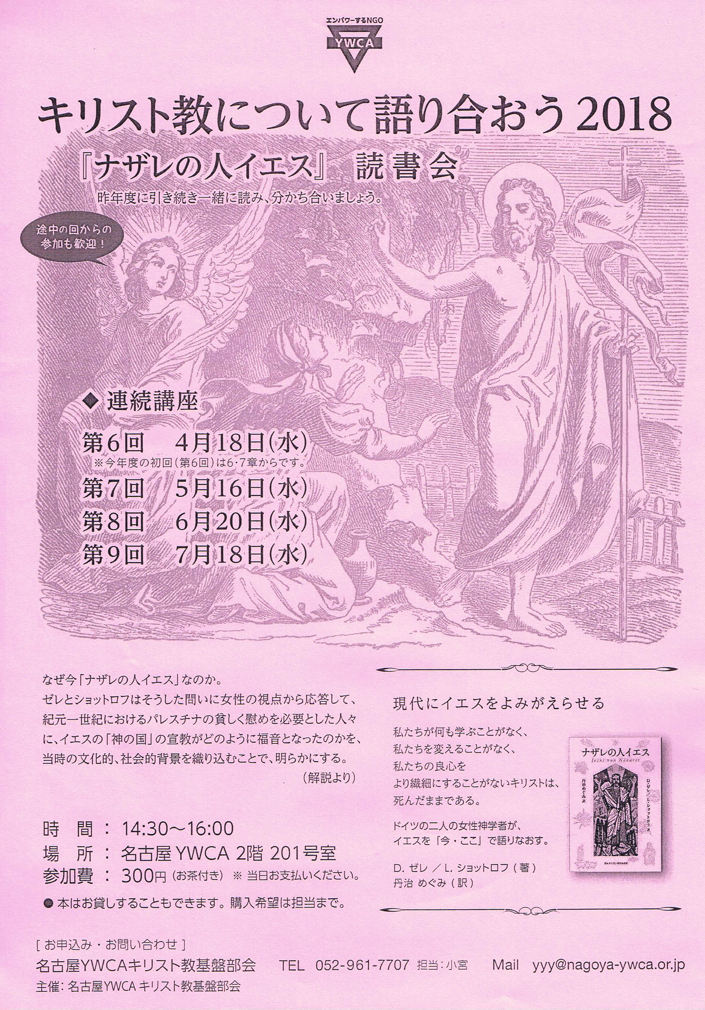 問い合わせ先:主催:名古屋YWCAキリスト教基盤部会