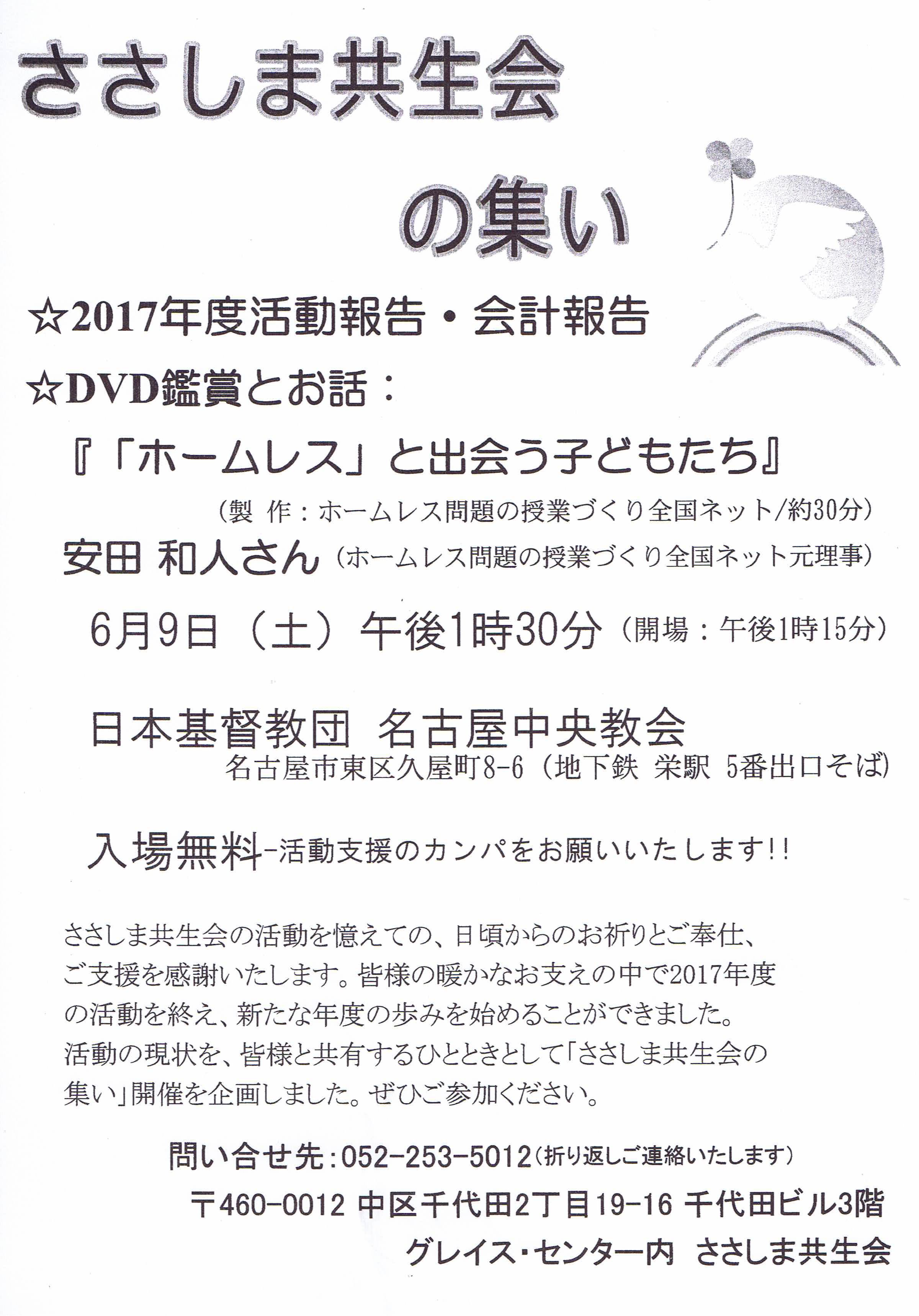 名古屋で長く野宿者支援をする「ささしま共生会」の活動報告会とDVD鑑賞会