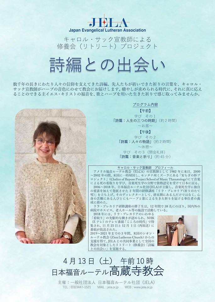 JELA(日本福音ルーテル社団)主催のキャロル・サック宣教師による修養会(リトリート)プロジェクト「詩編との出会い」