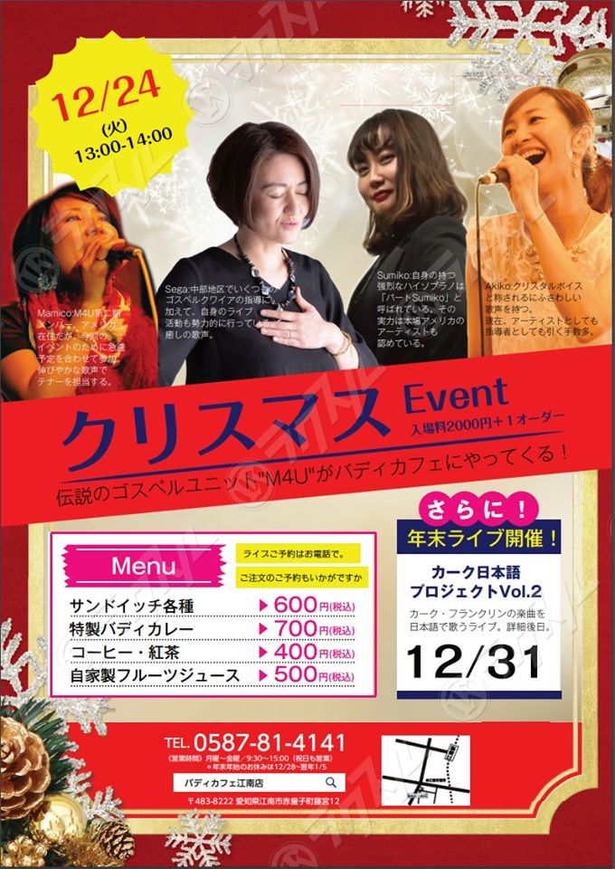 伝説のゴスペルユニットM4Uがクリスマスライブ!で登場します。