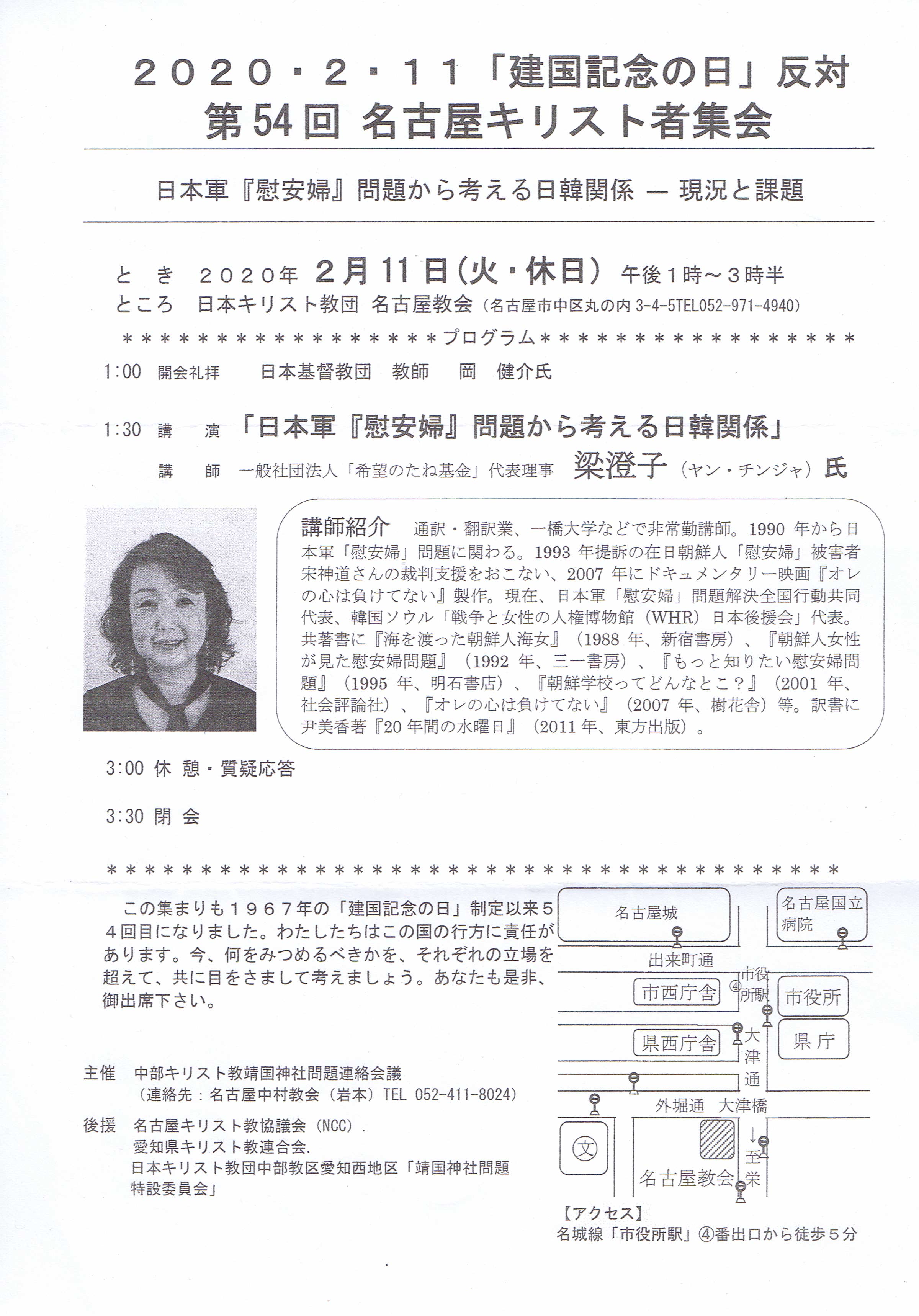 主催・中部キリスト教靖国神社問題連絡会議 TEL:052-411-8024(岩本)