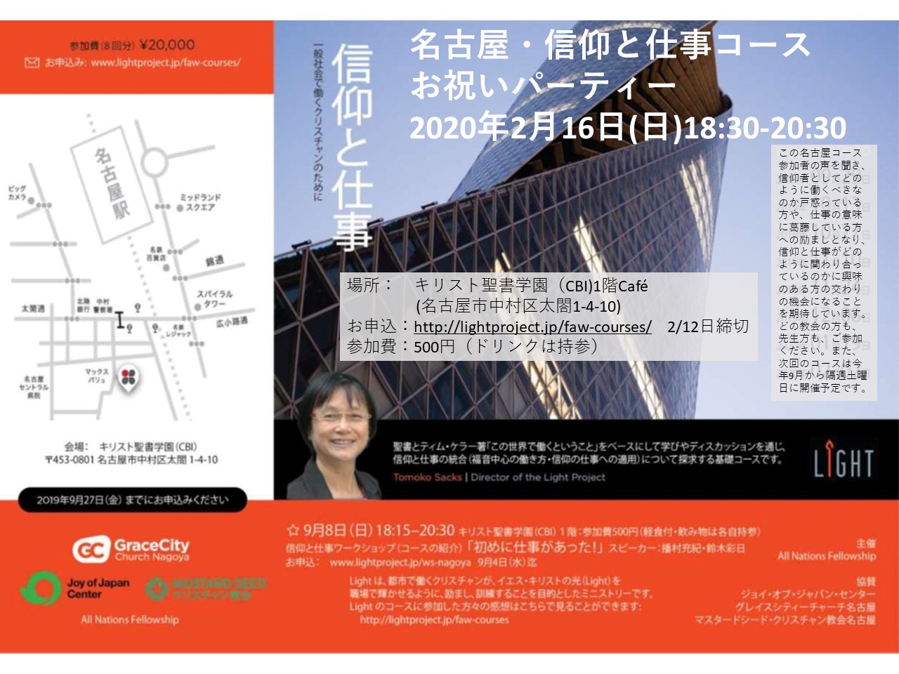 Light Projectの「仕事と信仰」のトレーニングコース名古屋開催参加者の終了お祝いパーティー。※コース受講者以外も参加出来ます。